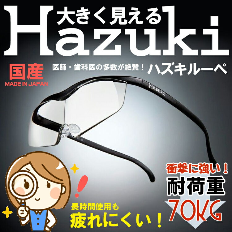 メーカー神田通信工業品名ハズキルーペ Hazuki ラージ クリアレンズ 1.6倍 黒 品番又はJANコードJAN:4964594732104サイズ-重量-商品説明●大きく見えるハズキルーペ(Hazuki)/高度なレンズ設計と高品質レンズにより歪みなく大きく見える。