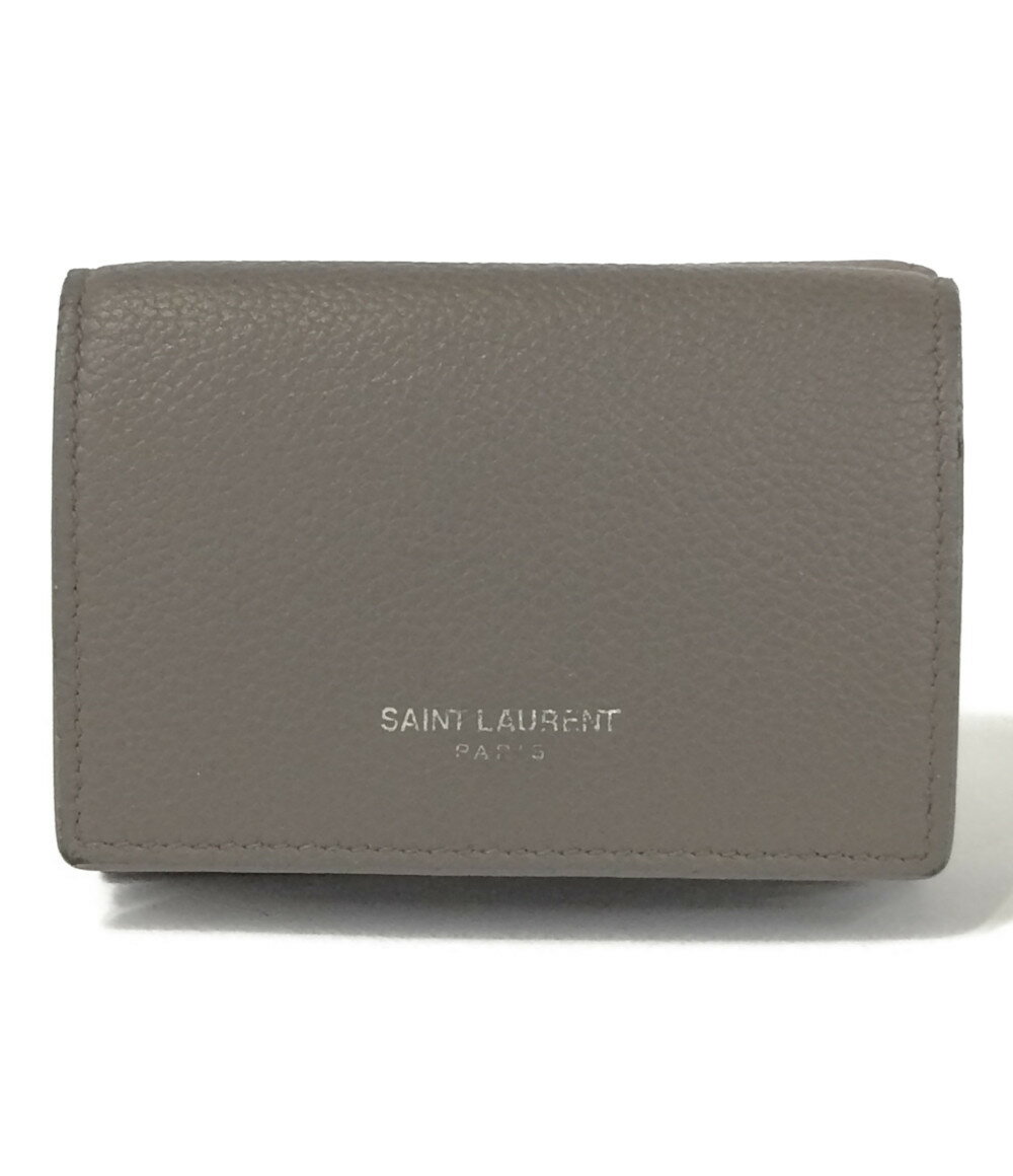 サンローランパリ SAINT LAURENT PARIS 三つ折り財布 タイニー ウォレット Wホック ロゴ グレインレザー フォグ 459784 B680N 1202 メンズ レディースサイフ お札入れ エレガント 高級 上品 大人 ブランド【中古】
