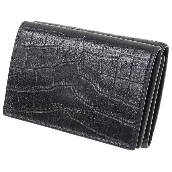 サンローラン クロコ 箔押し デザイン レザー 三つ折り 財布 箱袋【中古】